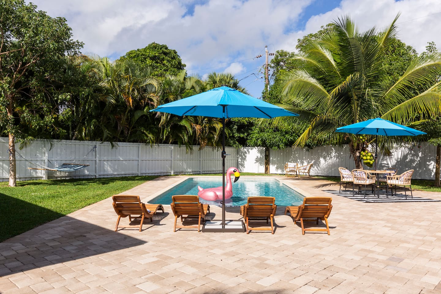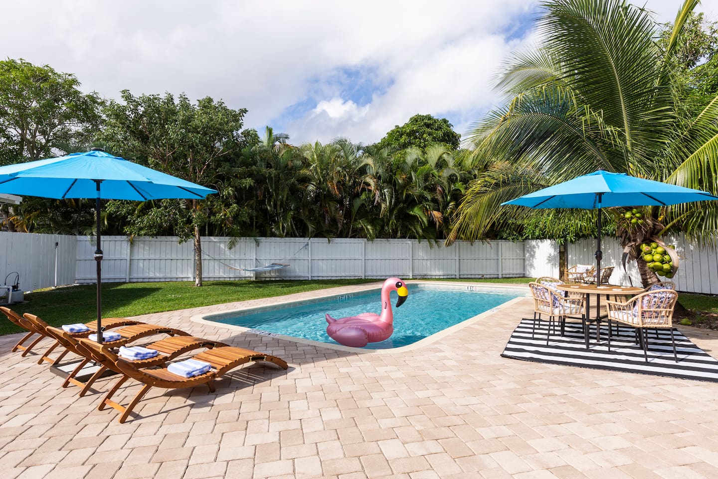 Guests of this lovely home have exclusive access to all of the interior amenities and appliances, along with the shared pool area. Self-check-in and a smart lock system provide the ultimate convenience for guests upon arrival. A pin/app access will be provided prior to check-in. Secure onsite parking is available for two vehicles. The pool area and backyard are shared with our other Airbnb, but they still provide a quiet and private space to wind down and relax. The beach is just 1.5 miles away from your front door. A door-to-door shuttle service will get you there in minutes! Submitting a request through the Uber-like FREEBEE App will ensure prompt service for free. We are committed to providing our guests with the utmost cleanliness during these uncertain times. Besides our stringent routine cleaning procedures, we use the highest classification of disinfectants recommended by the Centers for Disease Control and Prevention and the World Health Organization to treat known pathogens. A laundry area offers a washer and dryer for guest use.