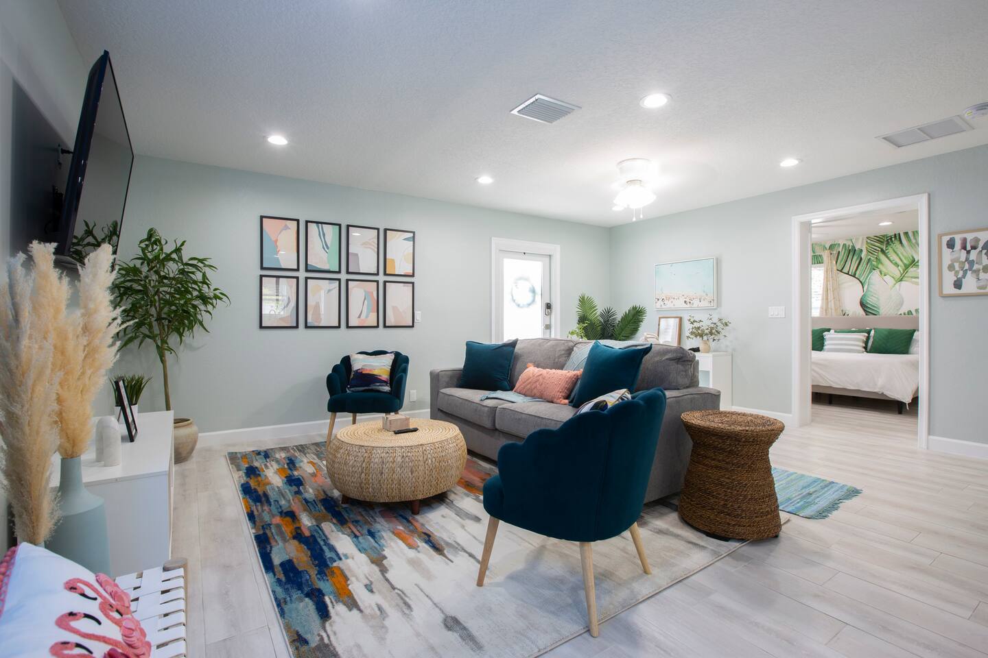 -Perfect vacation retreat for families with a balance of togetherness and privacy -Three 2-bedroom units side by side in the same building privately sharing the pool and backyard area. The perfect combo of a little separation with togetherness -Large pool and vast courtyard for swimming, yard games, and barbecues -Only a 4-minute drive to downtown Atlantic Ave and Delray's pristine beaches -Unforgettable memories await in this ideal vacation rental