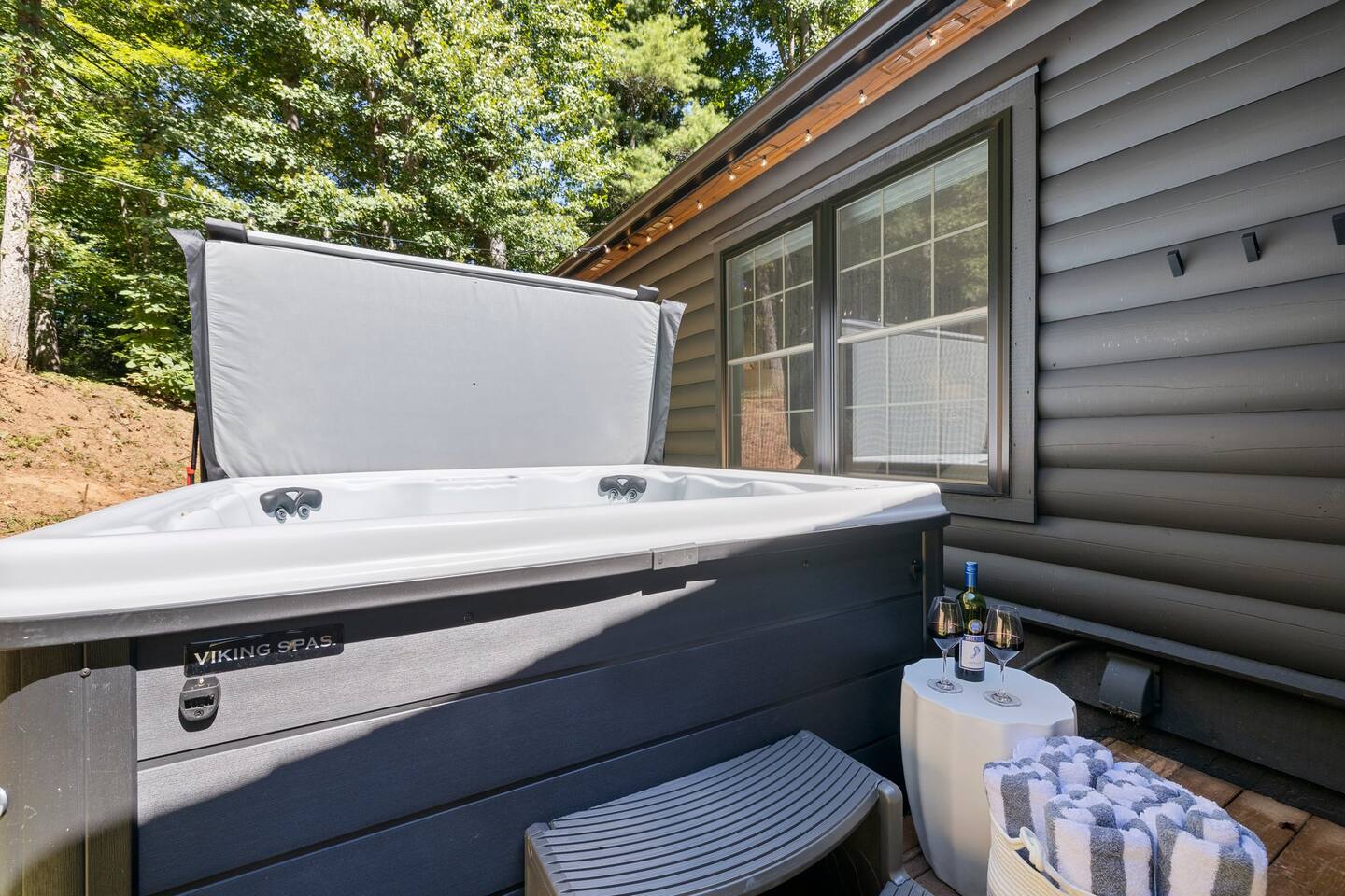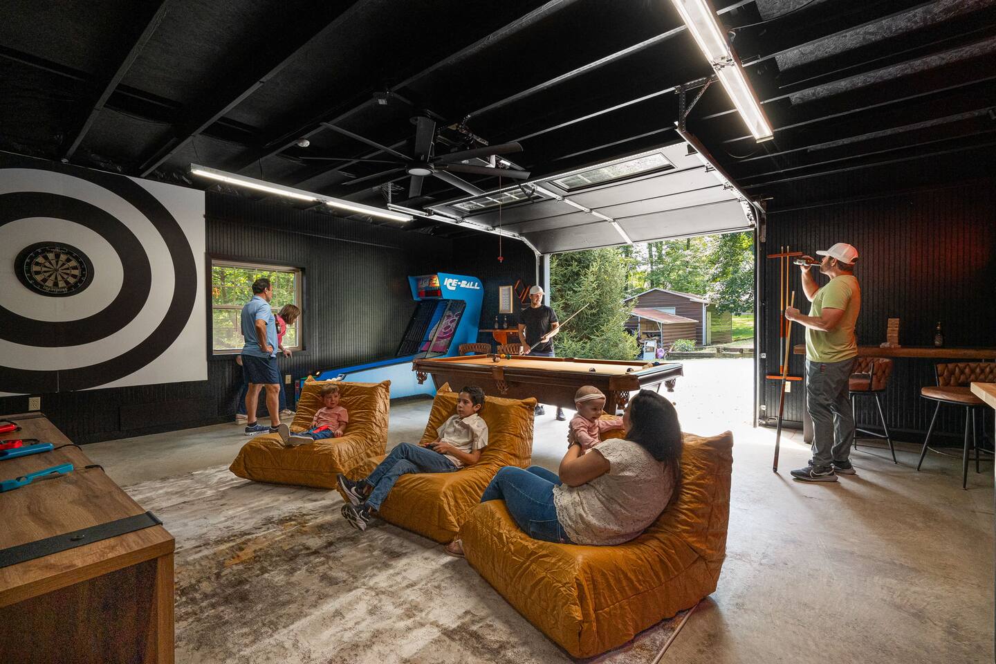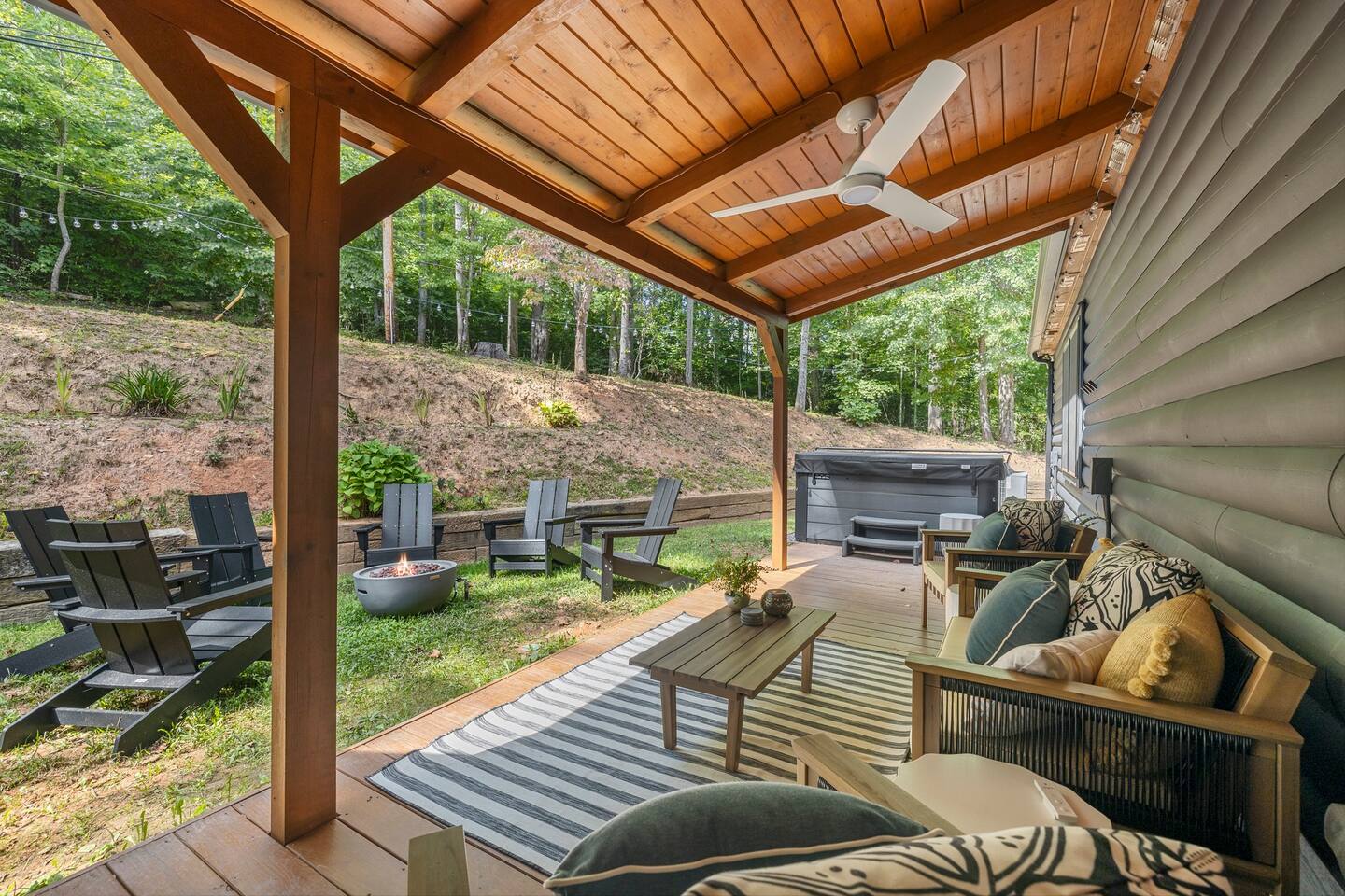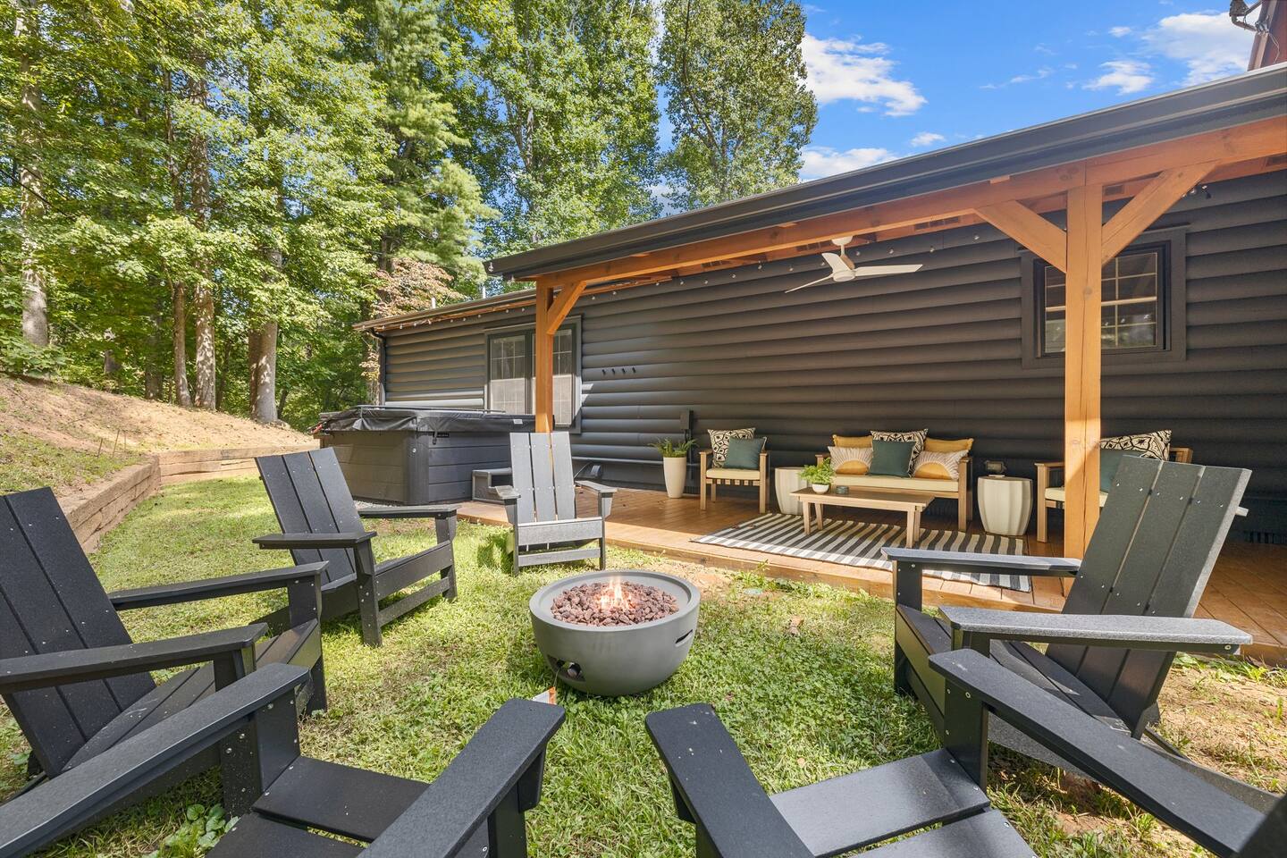 **Pre-launch Photos** We invite your friends and family to nestle into our cozy cabin surrounded by the tranquility of lush Asheville forest with grand old age hardwoods, black bears, deers, Jack rabbits, and birds. All this serenity while being just a 13 minute drive to the heart of downtown Asheville. ● Downtown Asheville just 13 minutes, No highway necessary ● Game Room - 75" TV, foosball, Arcade basketball ● 8 Person hot tub ●Grocery, Cafe, restaurants just 7 minutes away ● Coffee Bar