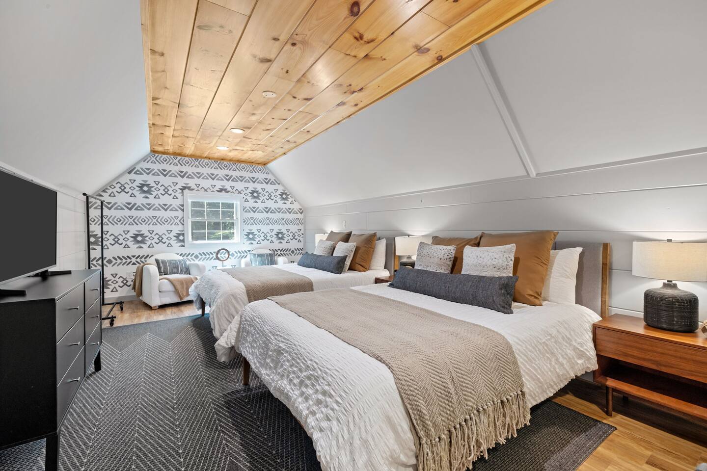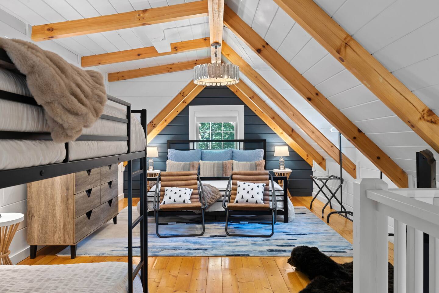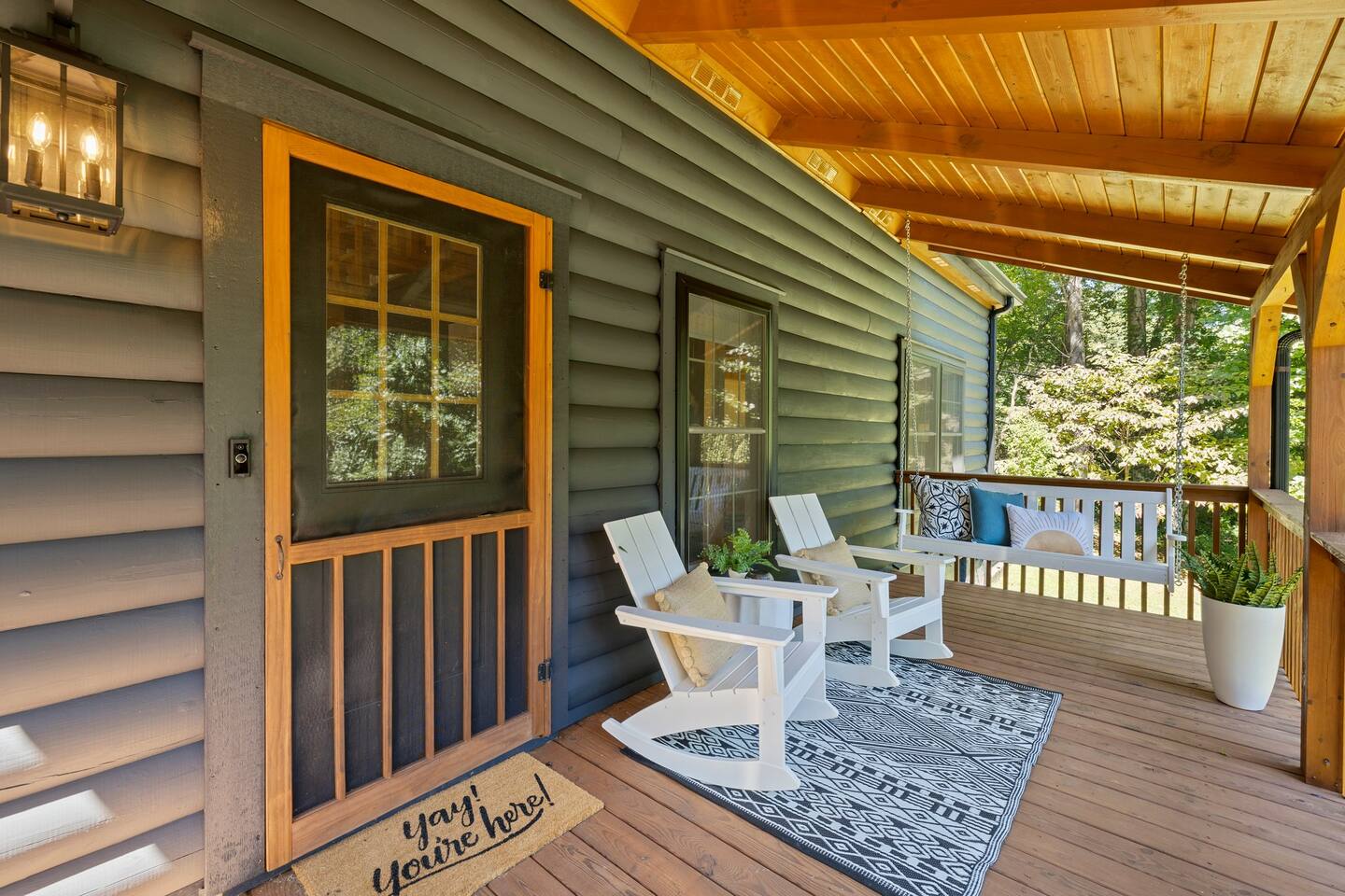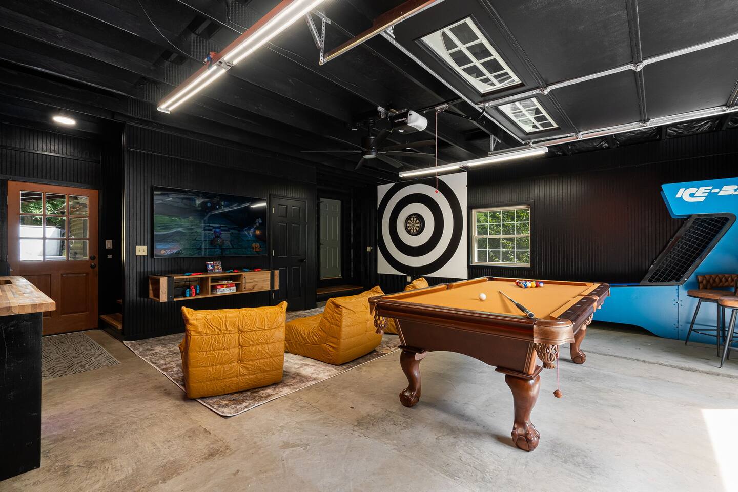 **Pre-launch Photos** We invite your friends and family to nestle into our cozy cabin surrounded by the tranquility of lush Asheville forest with grand old age hardwoods, black bears, deers, Jack rabbits, and birds. All this serenity while being just a 13 minute drive to the heart of downtown Asheville. ● Downtown Asheville just 13 minutes, No highway necessary ● Game Room - 75" TV, foosball, Arcade basketball ● 8 Person hot tub ●Grocery, Cafe, restaurants just 7 minutes away ● Coffee Bar